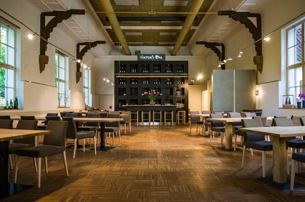 Der historische Pumpensaal des ehemaligen Wasserwerks wurde zu einer wundervoll individuellen Eventlocation ausgebaut. Vor der großen Weinbar finden, je nach Bestuhlungskonzept, rund 100 Gäste Platz.